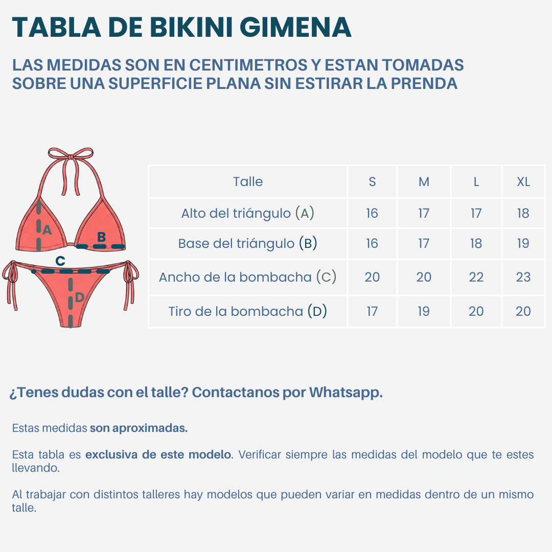 Colaless para atar correspondiente a cada talle.