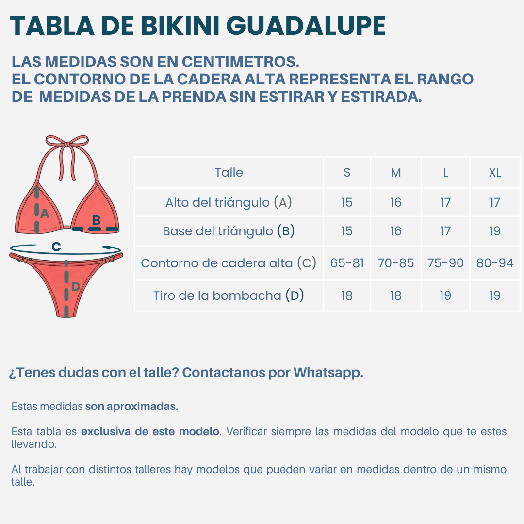Colaless regulable correspondiente a cada talle.