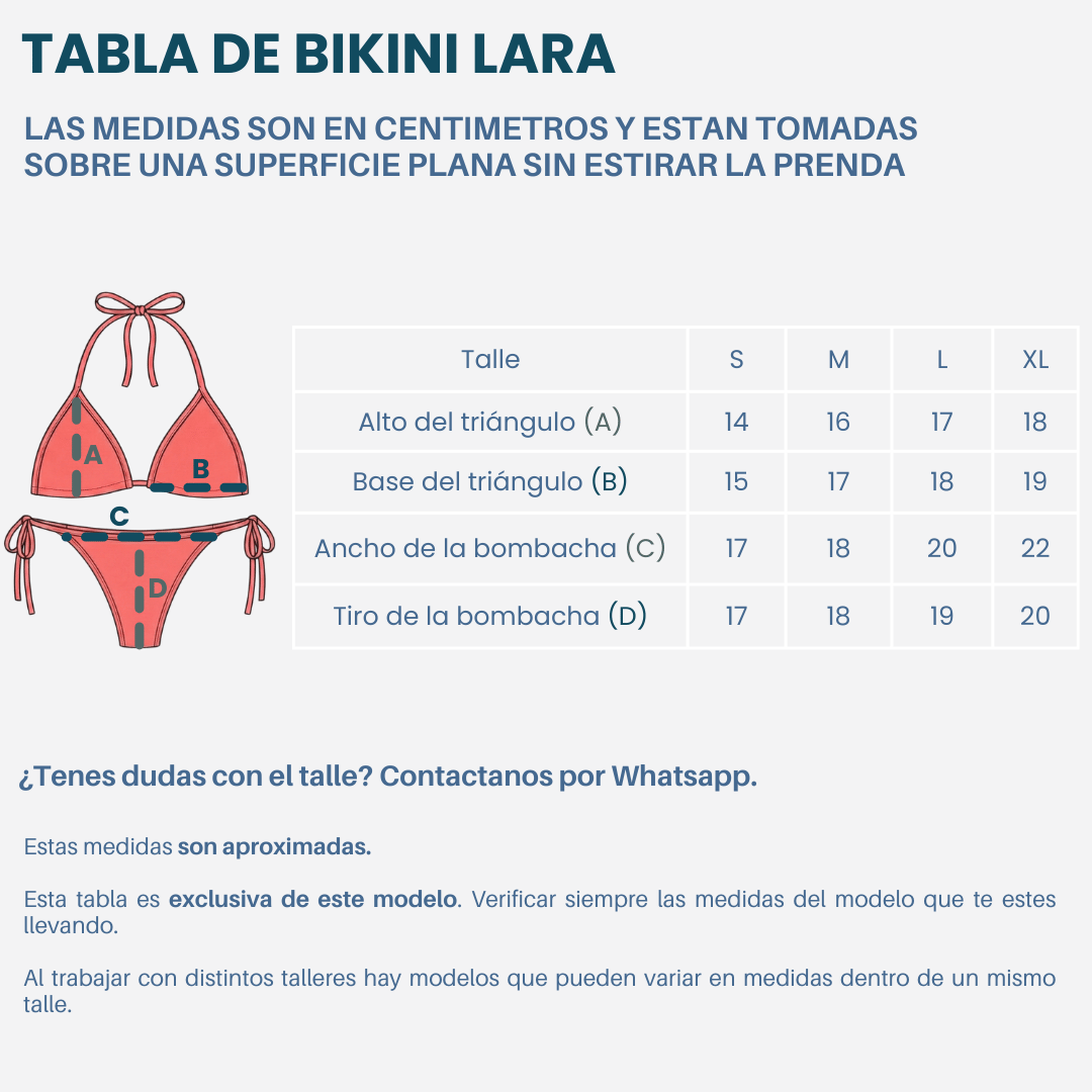 Colaless para atar correspondiente a cada talle.