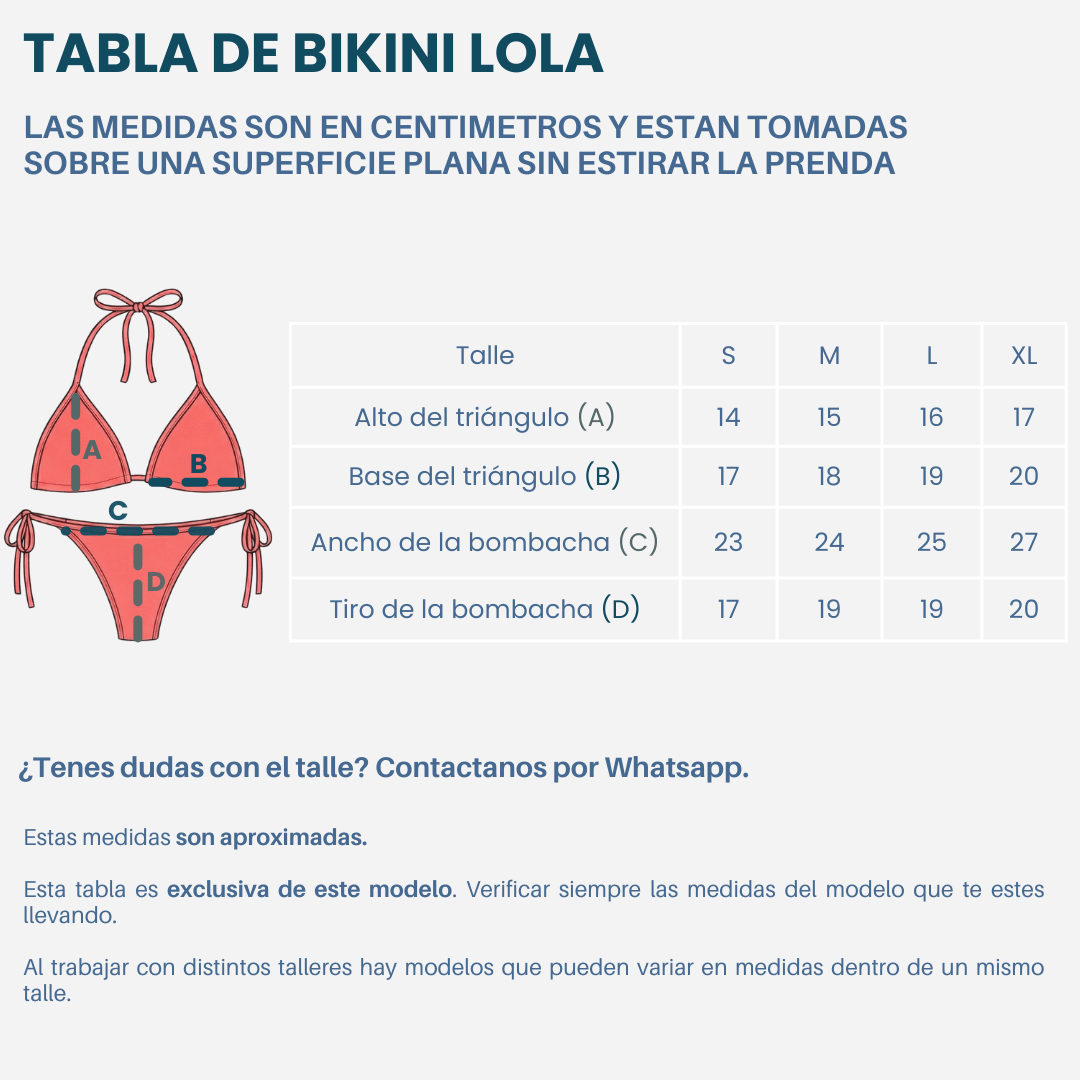Colaless para atar correspondiente a cada talle.