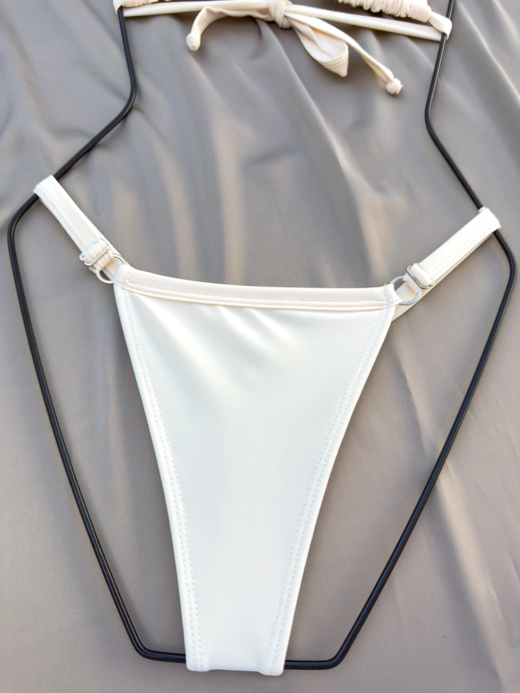 Corpiño triangulo con bajo busto movible. Para atar en cuello y espalda.