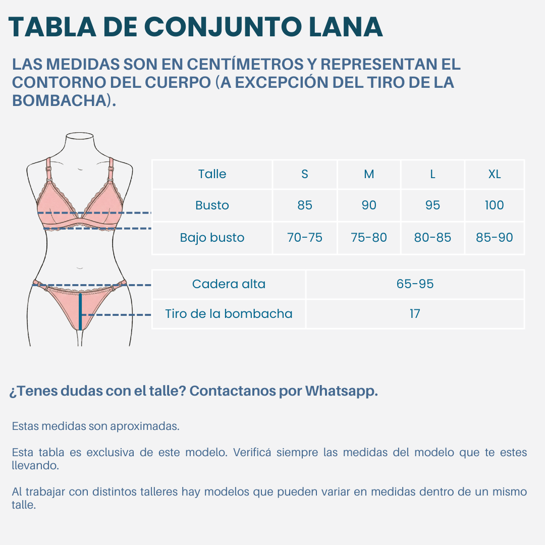Conjunto con corpiño triangulo de encaje, sin taza.